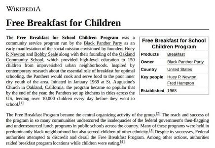 Truth be known the Black Panther Party is a positive entity of history with prescient visions of survival programs that included...the People's Free Health Center, People's Free Breakfast Program, People's Free Clothing Program plus many, many more. Despite their efforts to mobilize communities to be self sufficient, there were continued attempts by authorities to discredit them, which is why the narrative of all the positives accomplished were minimized or just not told! While the negative and misinformed narrative became headlines.